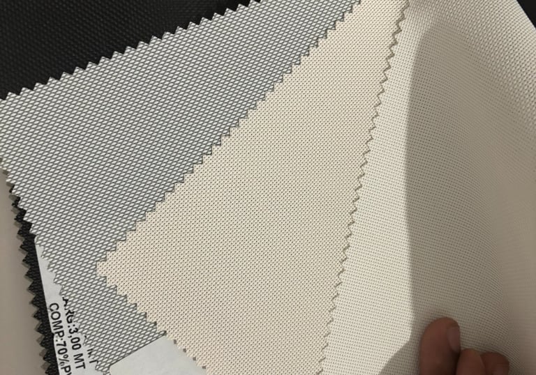 Usamos tecido tela solar 3%, resistente e que não esquenta.