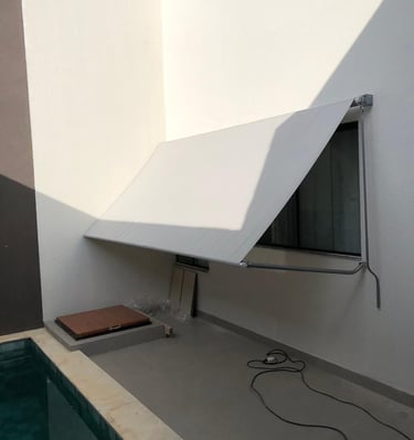 Nossos toldos são confeccionados exclusivamente com Tela Solar 3%, um material extremamente resistente ao sol intenso.